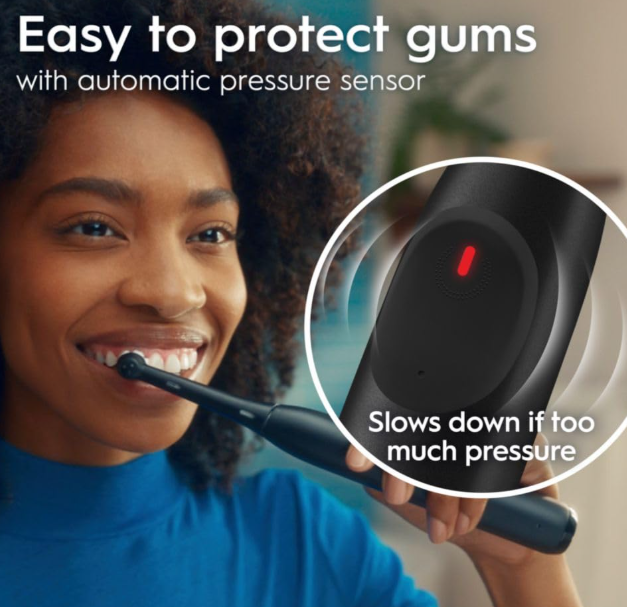 The smart pressure sensor and micro-vibration technology ensure gentle brushing that protects enamel and gums.