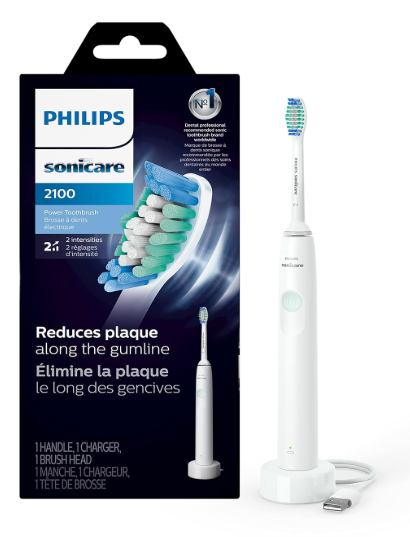 The Philips Sonicare 2100 is positioned as an affordable yet high-quality electric toothbrush offering core sonic features without premium extras (e.g., pressure sensor, multiple modes).