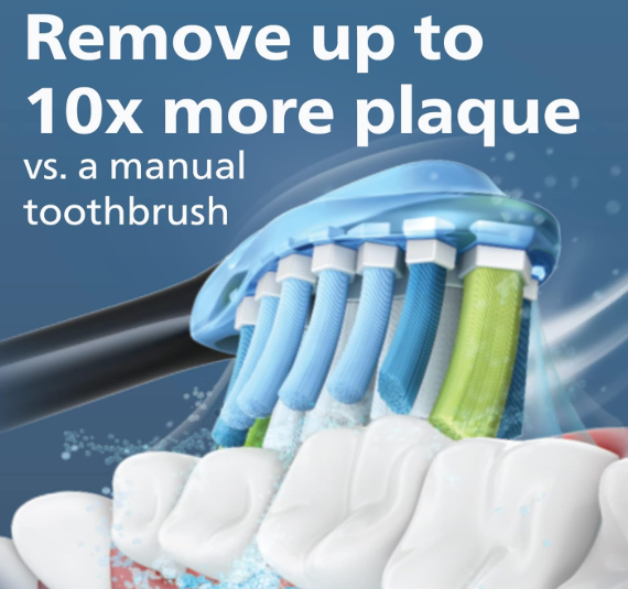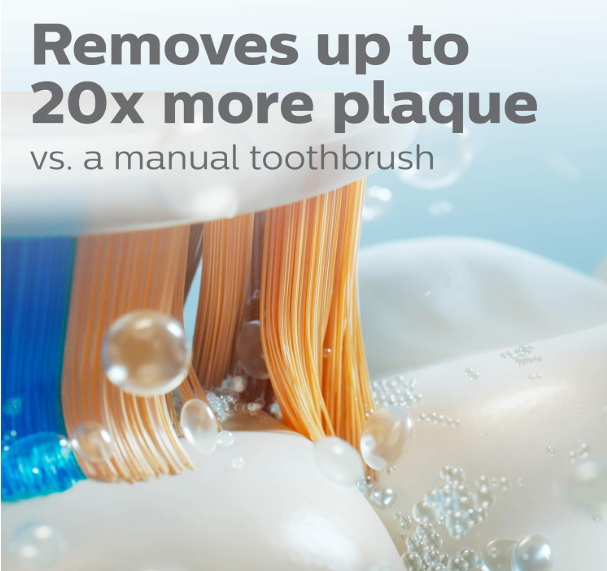 • Removes up to 10x more plaque vs. a manual toothbrush