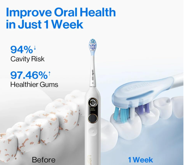 With a vibration rate up to 38,000 times per minute, the Y10 PRO competes with high-end models in its cleaning power.The brand claims up to 4.4× plaque removal on inner surfaces compared to manual brushes.